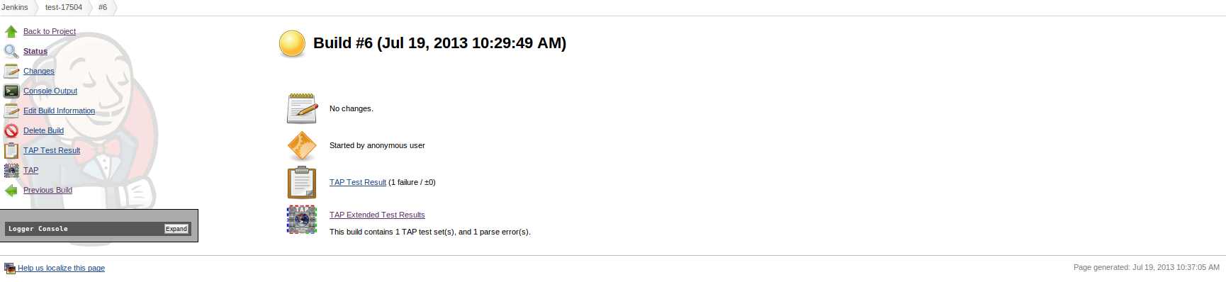 As you can see, there are way more tests failing than the 1 test that the TAP plugin lists in "TAP Test Result (1 failure / ±0)" on the same page.